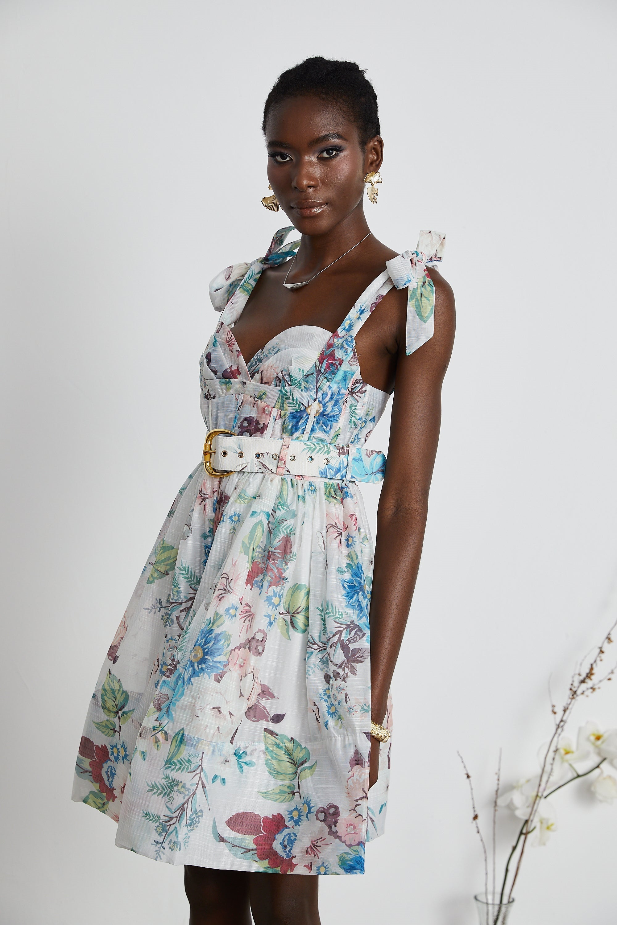 Fildişi Kabuğu Kumaş Desenli Mini Elbisemizle tarzınızı yükseltin. Rahat bir uyum için arka kısmı büzgülü olarak tasarlanan bu elbise, yan dikişlerde ceplere ve belinizi vurgulayan çıkarılabilir bir kemere sahiptir.